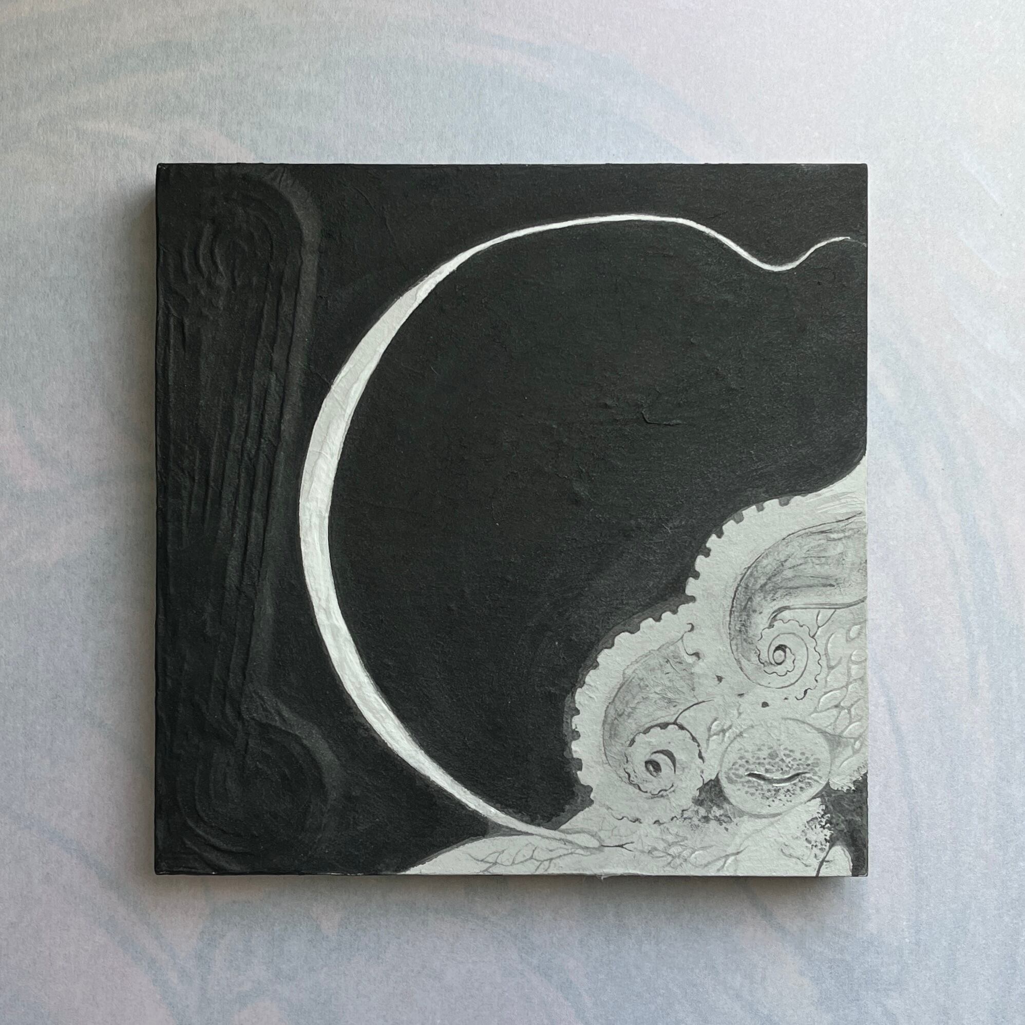 マテリアル: 墨、胡粉、内山紙、桐塑、木製パネル