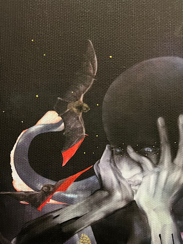 デジタルで制作、キャンバスに出力後、金色を加筆しています。